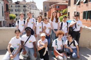 Der Startschuss fiel am Freitagmorgen um 5 Uhr. Nach einer langen Zugfahrt erreichten wir schließlich die Lagunenstadt Venedig. Den Samstag nutzten wir, um die Stadt zu entdecken: Mit dem Vaporetto erkundeten wir Venedig vom Wasser aus. Ein besonderes Highlight war der Ausflug zur Insel Lido, wo wir gemeinsam Pizza am Meer genossen. Anschließend reisten wir weiter in die Küstenstadt Fano. Bereits am Sonntag trafen wir dort zum ersten Mal auf unsere italienischen Partnerschülerinnen und -schüler aus Saltara und Montemaggiore. Nach einer gemeinsamen Stadtführung durch Fano verbrachten wir den Tag bei gutem Essen, Volleyball am Strand und sogar mit einem ersten Bad im Meer – trotz noch frischer Temperaturen.