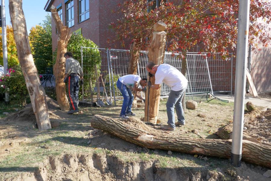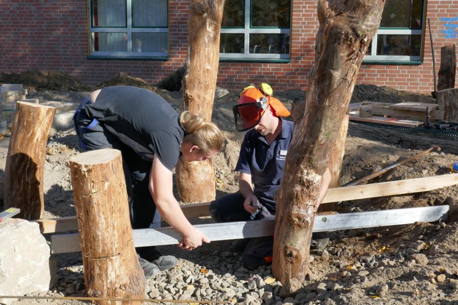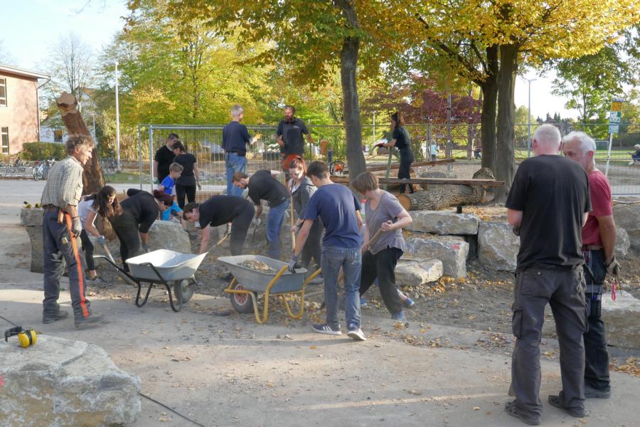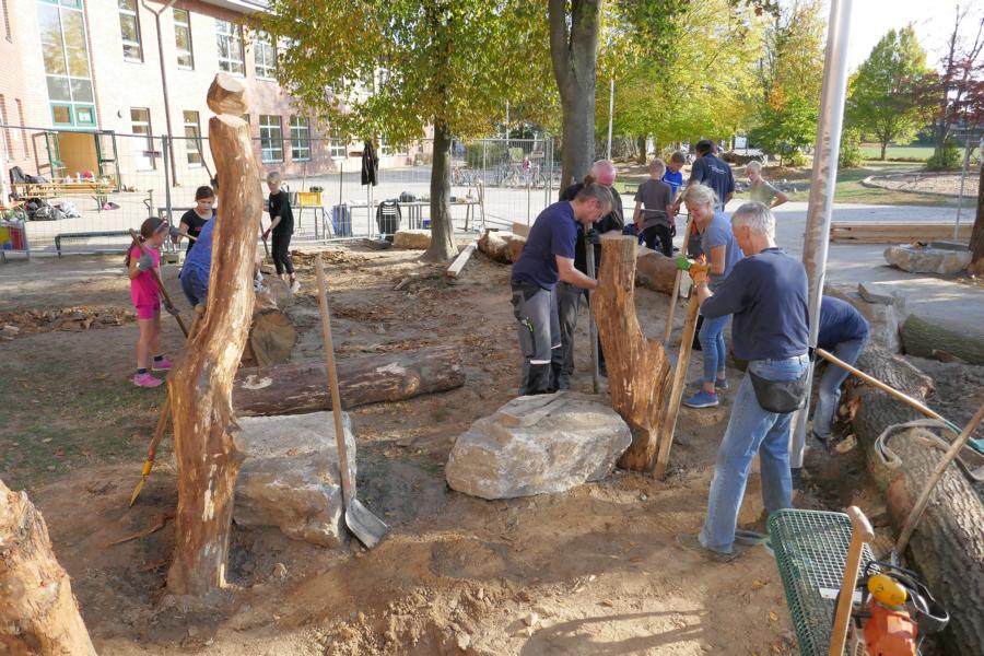 2. Baueinsatz mit Schüler*innen, Eltern und Lehrkräften auf dem Schulhof der Stufen 1/2
